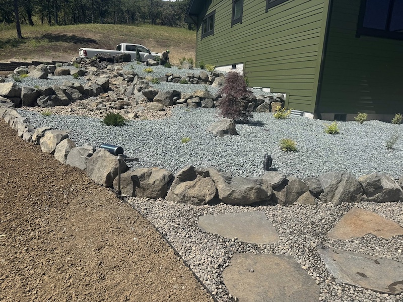 The visual appeal of natural stone lies in its ability to mimic the surrounding terrain, creating a cohesive look. In the Medford projects, the stone walls complement the homes’ exteriors and nearby trees, enhancing curb appeal. Environmentally, using locally sourced stone reduces the carbon footprint associated with transportation. The walls also support biodiversity by providing microhabitats for small wildlife, while the front yard’s sod and irrigation add green space, balancing the design with nature.